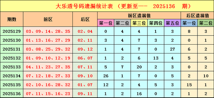 前区热号分析(0-3):上期热号出现在第一、二区,开出4个07、11、16、23,热码出号相对较热;最近8期热号有20个,热号出号相对较多。本期热码参考27。