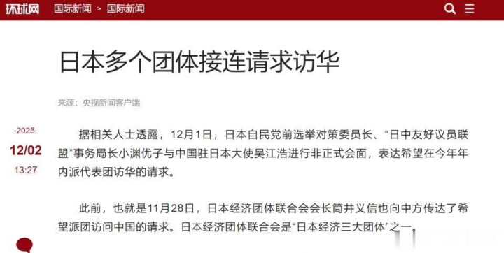 日本两大经济团体想派代表来中国谈生意,但中国还没给回复。这些团体包括经团联和日中友好议员联盟,他们找了中国大使馆好几次,希望能和中国聊聊经济合作的事。