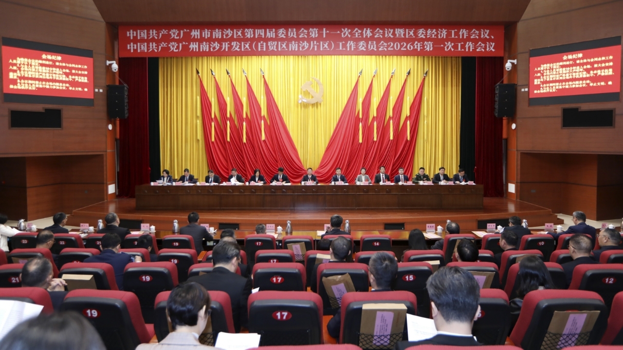 1月12日,中国共产党广州市南沙区第四届委员会第十一次全体会议暨区委经济工作会议、中国共产党广州南沙开发区(自贸区南沙片区)工作委员会2026年第一次工作会议召开。会议总结2025年工作,分析当前形势,部署2026年工作。区委常委会主持会议。区委书记刘炜代表区委常委会作报告,区委副书记、区长岳阳就经济工作作具体部署。点击查看现场金句海报