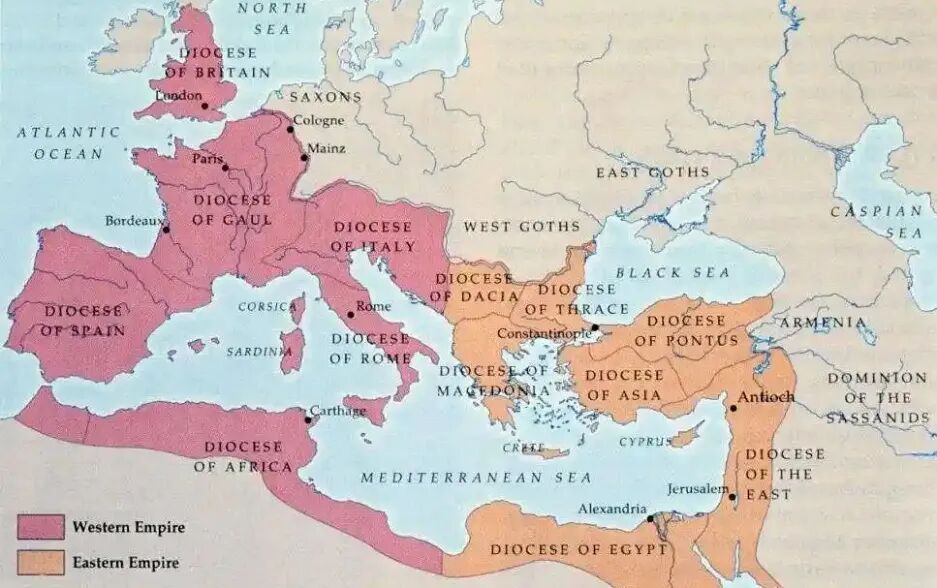 公元4世纪末,庞大的罗马帝国一分为二,形成了以拉丁文化为核心的西罗马帝国,和以希腊文化为核心的东罗马帝国。从账面数据来看,西罗马帝国是当时世界上最强大的国家之一,统治着2000多万的人口,拥有极其强悍的野战军团,高卢(法国)是欧洲最好的产马地,迦太基作为粮仓,能为罗马城的公民提供廉价面包。然而仅隔了不到一百年,西罗马帝国就在蛮族的冲击下走向灭亡,其衰落速度之快令人叹息。